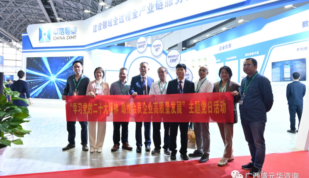 公司領導及公司黨支部成員與廣西建設工程造價協(xié)會黨支部在觀展期間進行了黨建活動交流并集體合影