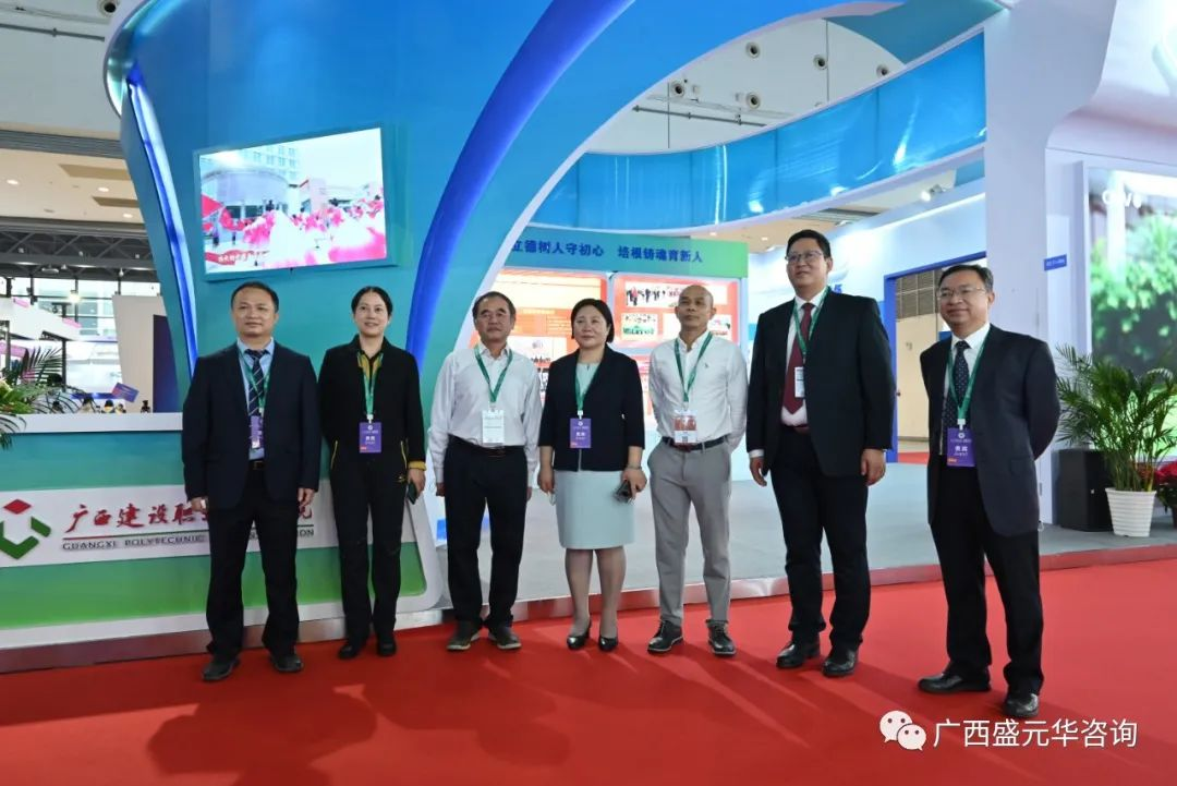 公司領導參觀了廣西建設職業(yè)技術學院展位并與校黨委書記劉曉紅、校長吳昆等貴賓們合影
